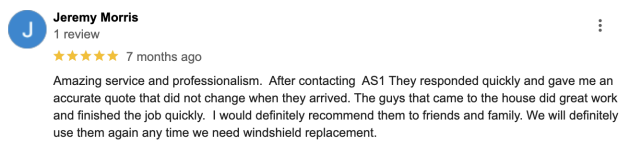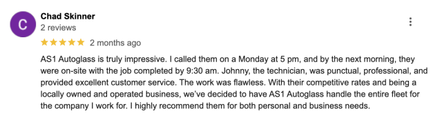 We at AS1 Autoglass endeavor to provide our clients with quick and efficient service at their preferred schedules and locations. As much as possible we want to lessen the hassle of windshield repair and replacement by providing a same-day service regardless of the car make and model. As soon as an estimate is given, we can readily work on the job and will do so with the utmost professionalism. We are a licensed, certified, and fully insured company